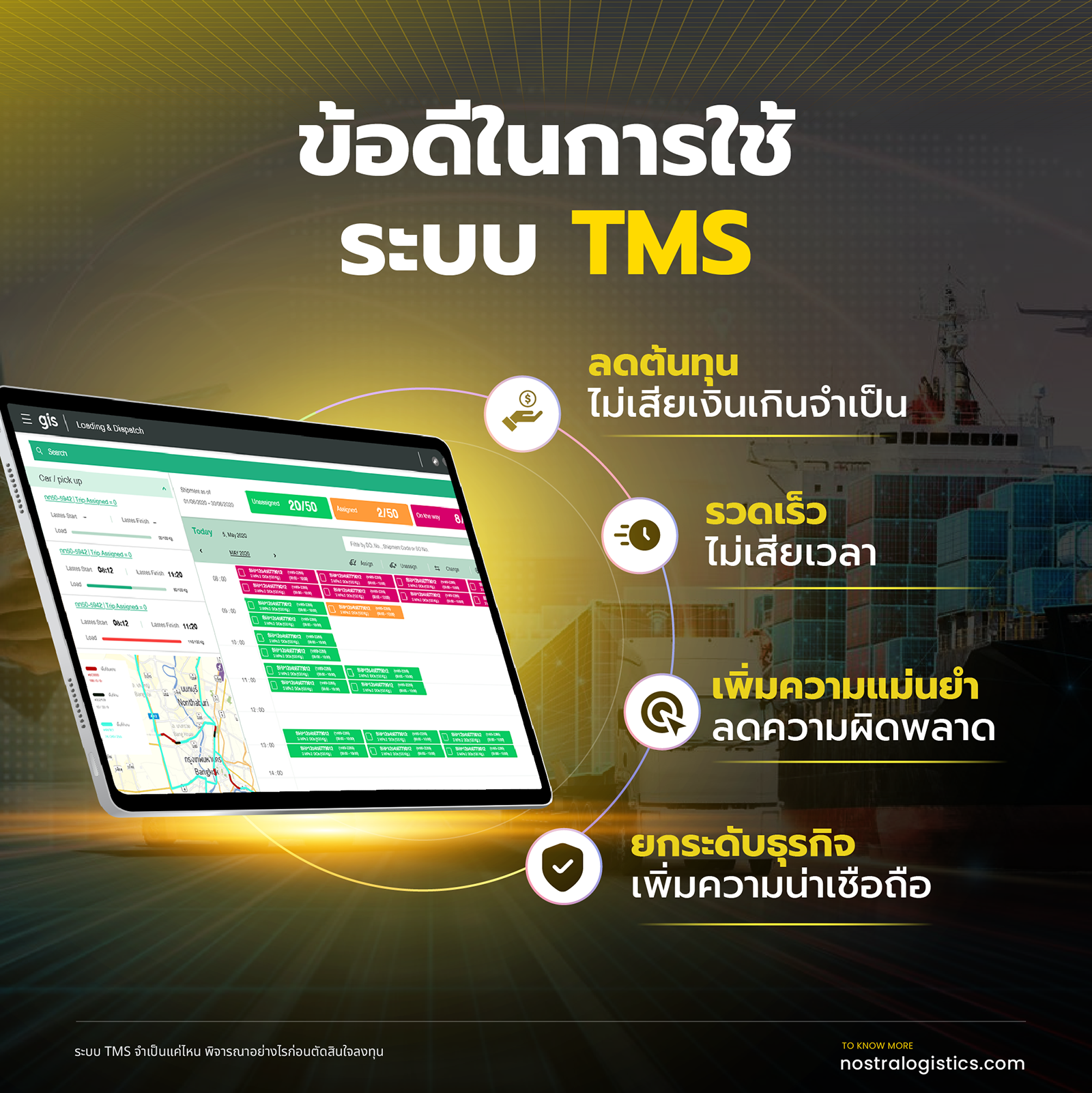 การบริหารงานขนส่งและซัพพลายเชนที่มีประสิทธิภาพจะช่วยเพิ่มโอกาสสร้างรายได้ ลดเวลางาน และลดต้นทุนให้แก่ธุรกิจ ไม่ว่าธุรกิจขนาดเล็กหรือขนาดใหญ่ ต่างต้องการปรับปรุงการบริหารและการจัดการการทำงานเพื่อให้ธุรกิจประสบความสำเร็จและอยู่รอดในยุคเศรษฐกิจผันผวนในปัจจุบัน เทคโนโลยีระบบบริหารจัดการงานขนส่ง (Transportation Management System – TMS) จึงเป็นเครื่องมือสำคัญที่ธุรกิจเลือกลงทุนเพราะจัดการงานได้อย่างเป็นระบบและรวดเร็วช่วยควบคุมต้นทุนได้อย่างรัดกุมตลอดจนสามารถวัดผลการทำงานได้อย่างชัดเจนและตรวจสอบได้อย่างโปร่งใส